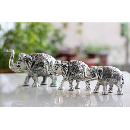 Aluminium Elephants With Dark Embosed Silver Finish Design, Home Decor