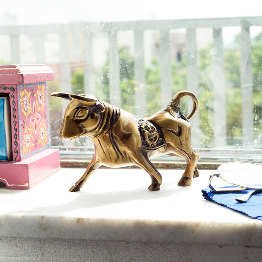 Brass Handcrafted Bull Cart Showpiece Figurine