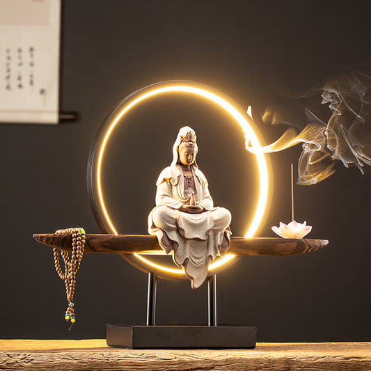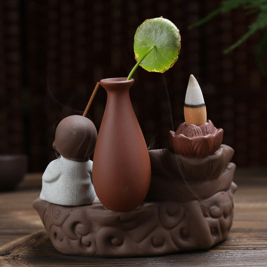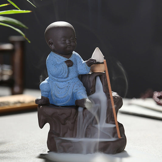 Little Tathagata Zisha Backflow Incense Burner Ceramic Creative Decoration Little Monk Mountain Flowing Water Aromatherapy Burner Guanyin Buddha Statue