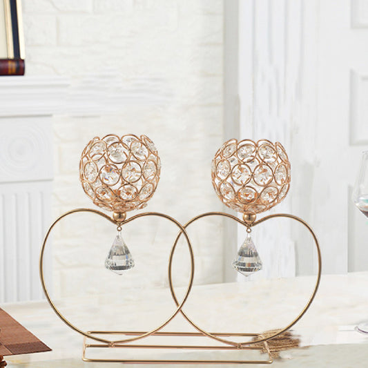Wrought Iron Crystal Golden Candlestick Ornaments