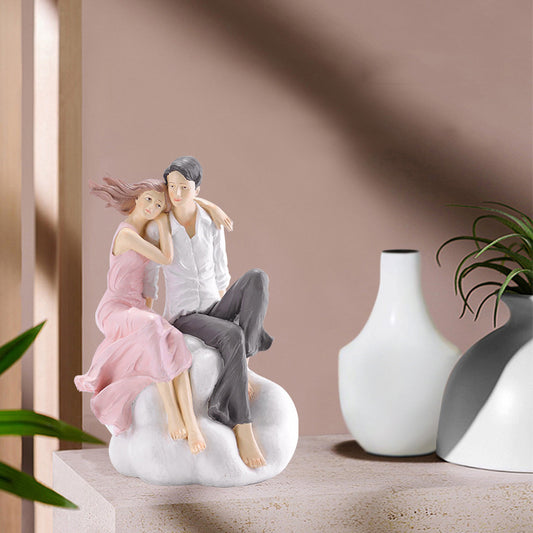 Resin Sculpture Romantic Sitting Couple Statue Decor Figurines