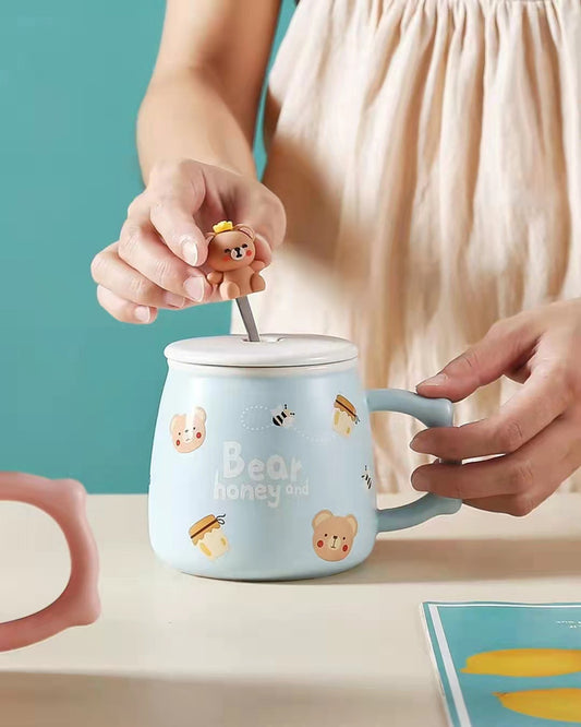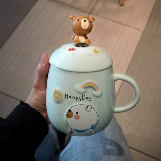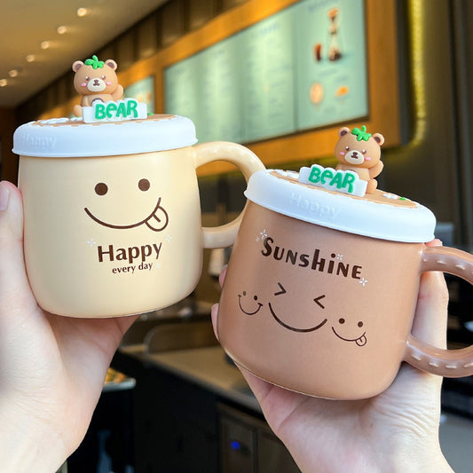 Mug With Lid Couple Little Bear Ceramic Water Cup Girls Creative Breakfast Cup