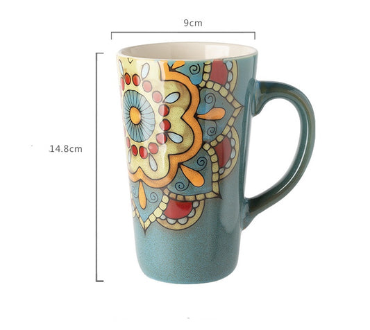 Mug Large Capacity Ceramic Spoon With Lid Retro Style Hand-painted Office Home Drinking Cup
