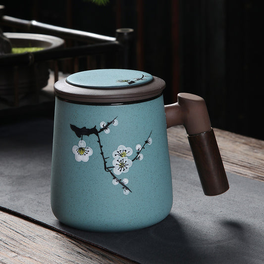 Purple Sand Ceramic Hand-painted Cup With Lid