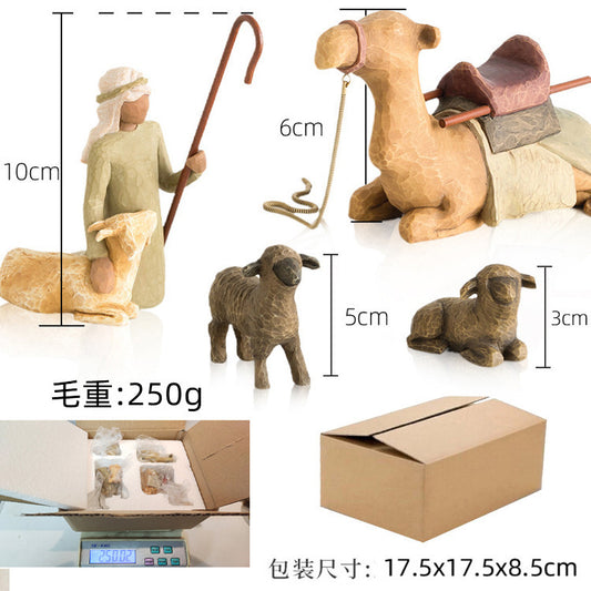 Shepherd and Stable Animals Resin Figurines Ornament