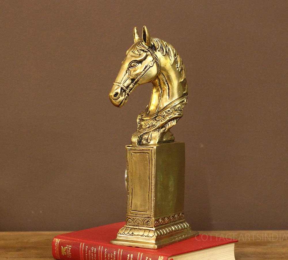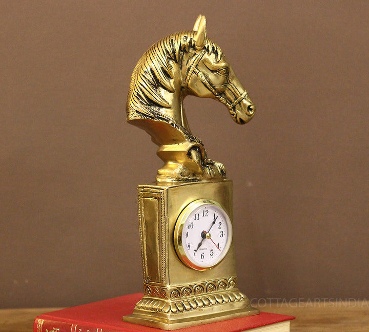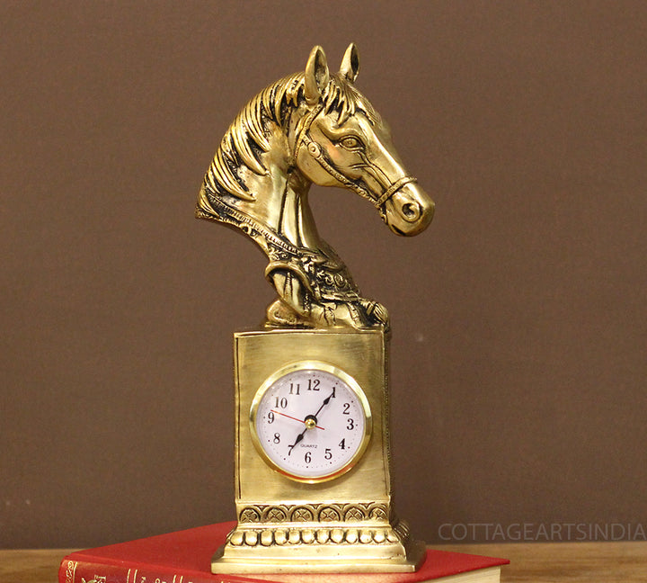 Dimensions11 x 4.5 x 2.75 ( Height x Width x Depth ) inchesWeight2.300 KgMaterialSolid BrassProduct DescriptionBrass Horse Bust with clock in beautiful posture for tabletop decor , corporate gift or office decorInstructions For CareEnsure the lasting beauty of this idol with simple care gentle cleaning with a soft, dry cloth is recommended to preserve its divine radiance.. DO NOT use harsh chemicals to clean. You can apply a thin coat of any natural oil by gently rubbing it throughout the statue with a soft cloth in order to maintain its luster.Timelines for dispatch2-3 working days rom the receipt of order.Delivery Date5 to 7 days from date of dispatch . In case of urgent delivery please contact us on whatsapp.Disclaimer 1. Handcrafted products generally have slight imperfections, unmatched by mass production. Embrace the charm of handmade for authenticity and a connection to the artisan's skill.2. Any prop or accessories used for photography are not included with the product .Manufacturers and Retailers of Indian Handicrafts.Wall Decor | Table Decor | Brass Idols | Wooden Artware and MoreDimensions 11 x 4.5 x 2.75 ( Height x Width x Depth ) inches Weight 2.300 Kg Material Solid Brass Product Description Brass Horse Bust with clock in beautiful posture for tabletop decor , corporate gift or office decor Instructions For Care Ensure the lasting beauty of this idol with simple care gentle cleaning withDimensions 11 x 4.5 x 2.75 ( Height x Width x Depth ) inches Weight 2.300 Kg Material Solid Brass Product Description Brass Horse Bust with clock in beautiful posture for tabletop decor , corporate gift or office decor Instructions For Care Ensure the lasting beauty of this idol with simple care gentle cleaning with