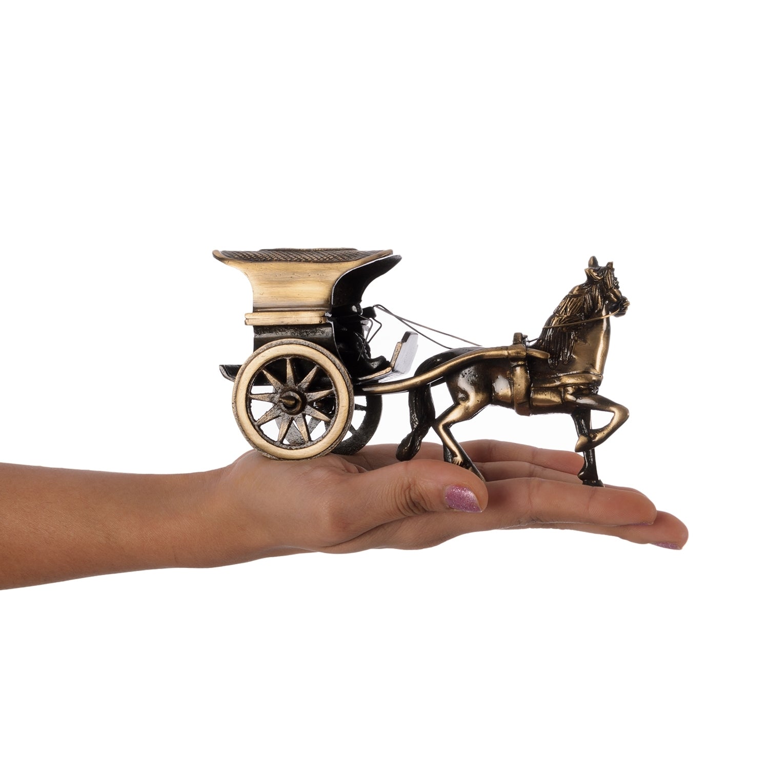 SKU Code - BHC502Brand Name - eCraftIndiaSize (LxWxH) - 15Cm x 7Cm x 8Cm 6"x3"x3.5" Material - BrassCare Instruction - Don't wash, use drywet cotton cloth to remove dirt.Package Content - One Unit Brass European Horse CartColor - BrownProduct Description - Decorate your home with our brown Brass European Horse carriage showpiece which is literal proof of craftsmanship. This metal showpiece reflects elegance and is also a great gift option for your friends and especially your family when it comes to religious festivities or celebrations. Idols & figurines are said to bring prosperity to the lives of people who have a hold of them in their homes. Intricately designed, these are a perfect handcrafted showpiece that is made using several inherited techniques. You can find many such God idols and figurines in many different avatars on our online portal that your guests are sure to adore. This showpiece is handcrafted intricately by our skilled artisans. You can find many more god idols and figurines in different avatars on our online portal in various colors that suit your home or office interior.Give a royal touch to your home decor with this antique brass finish European horse cart showpiece. Shop this today online from eCraftIndia!Give a royal touch to your home decor with this antique brass finish European horse cart showpiece. Shop this today online from eCraftIndia!